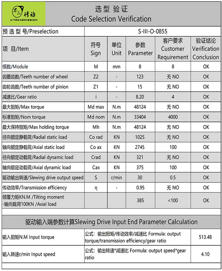 william威廉中文官网为客户提供一目了然的选型验证文件,客户可以通过文件清晰的得出回转驱动是否适用,直观的了解每个参数的安全系数,避免选型错误给客户带来麻烦及损失。