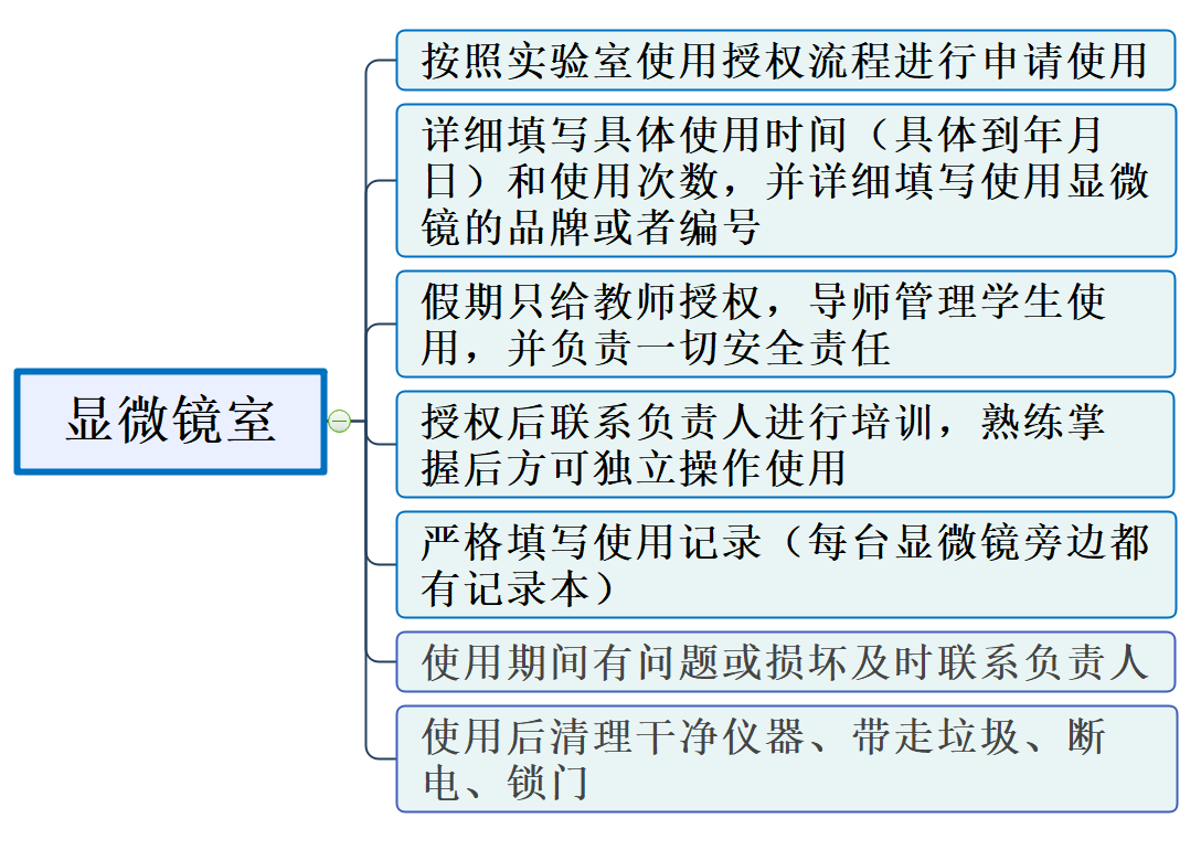 使用前需要实验室授权流程进行申请,申请后联系仪器负责人进行显微镜相关技能培训,熟练掌握显微镜操作后方可独立操作使用,并按照相关要求进行登记。