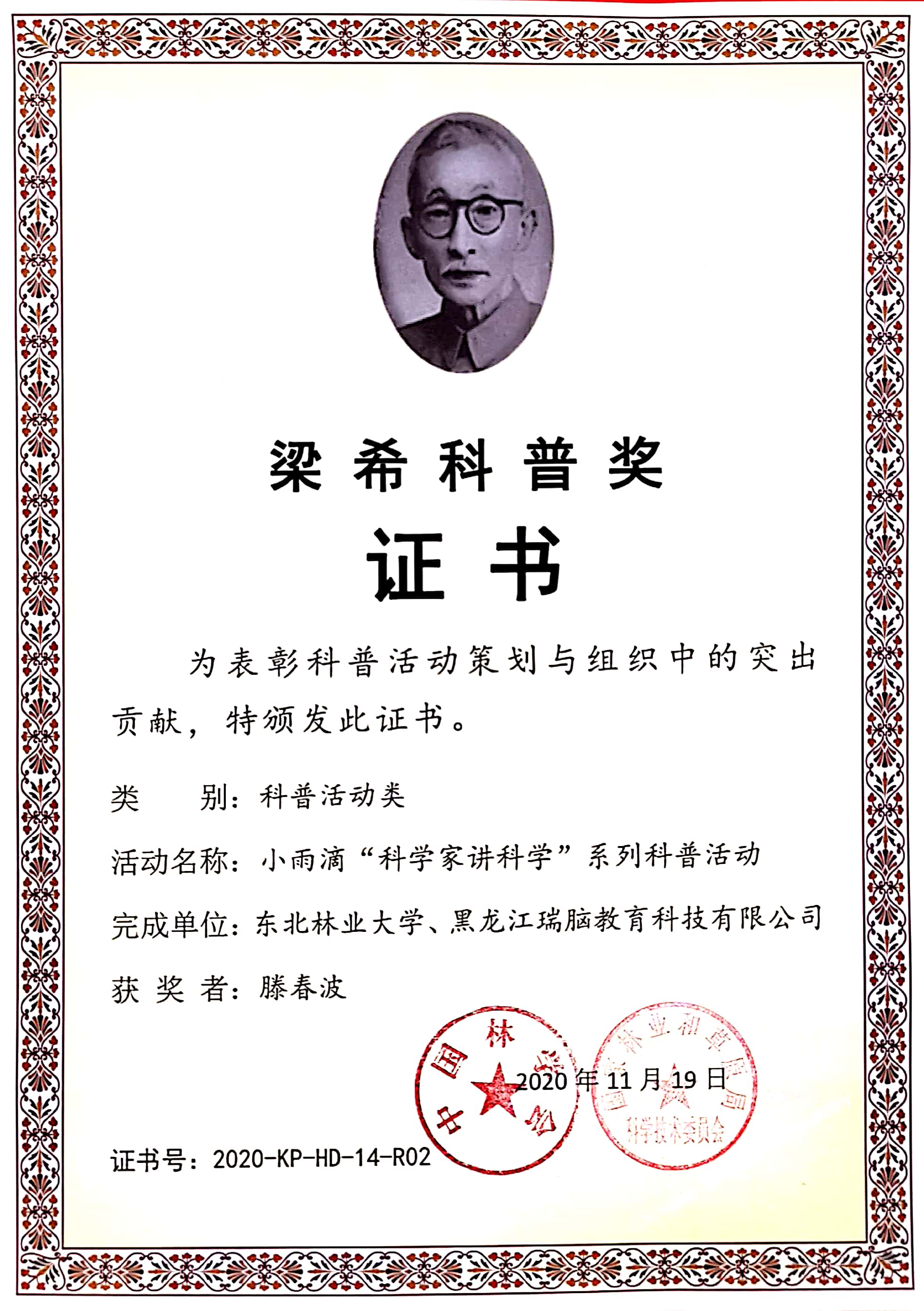 我校再获梁希科普奖殊荣-东北林业大学新闻网