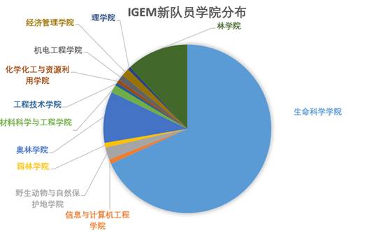 随着iGEM竞赛在学校的影响力逐步提高,在2021赛季iGEM招新中我们也得到了来自更多其他学院同学的关注。2021年,有来自我校12个学院的超过300名同学报名,经过资料统计有70%的报名学生总智育加权排名为其专业前百分之十(图2)。经过多轮筛选后,目前iGEM队员囊括了来自生命、奥林、林学、动资学院目前大二年级的全院成绩第一名,及大量全院前十名的同学。他们具有丰富的想象力和创造力,通过手把手、点对点的细致科研训练,丰富了学生的科研经历,为高质量、高水平本科生的培养提供了更多的选择和机会。