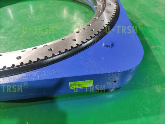 型号为S-II-O-0841的外齿回转驱动,是william威廉中文官网的工程师为客户设计的一款应用在自动化设备上的产品。回转驱动需要水平安装在设备的平台上,带动上面的转台旋转。而在转台上则安装了一个可以在竖直面上旋转的装置,这样就由回转驱动和竖直面上的装置组成了一个两轴联动的旋转机构,以此来完成一些特定的旋转动作。