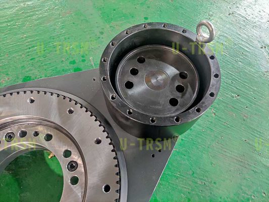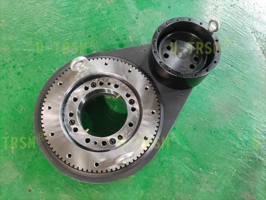 2-S-I-O-0229 双极齿轮式回转驱动,应用在特种车辆上,客户要求驱动载荷3吨,扭矩2068Nm,液压马达与回转中心要有一定的距离。