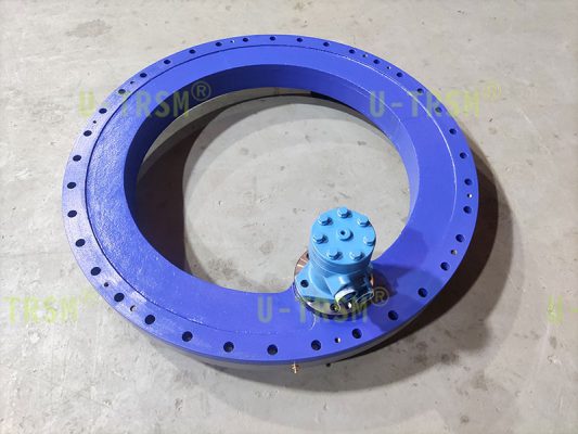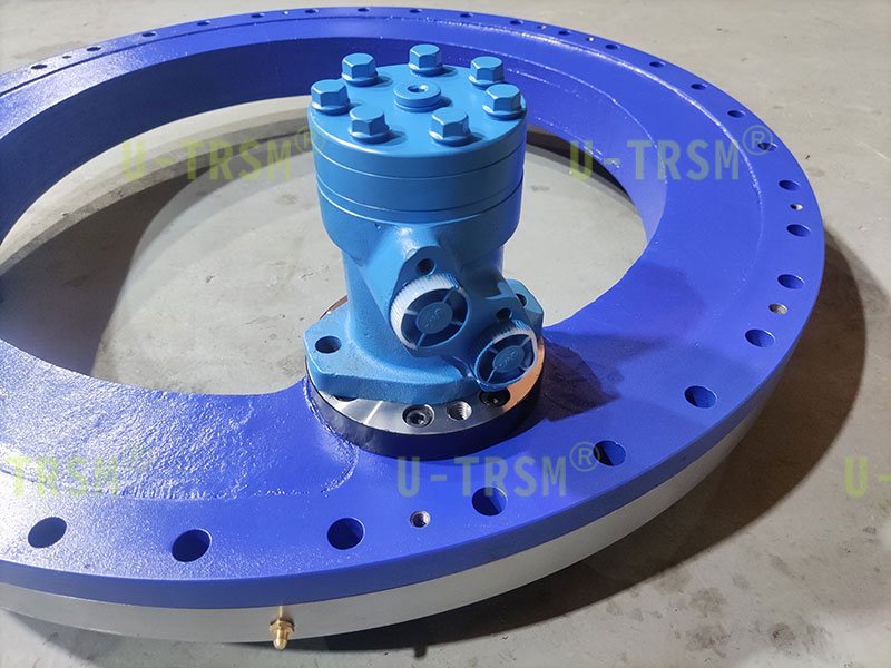 设备有现成的液压站,所以我们为客户配套了液压马达,液压马达转速选择范围大,可以通过调整液压油的流速调整液压马达的转速,输出扭矩大。马达可以短时间过载或者堵转使用,可以使用在恶劣的环境中,不易损坏。液压马达具有转速可调,大扭矩的特性,一般不需要配额外的减速机使用,可以直接连接回转驱动,方便快捷。