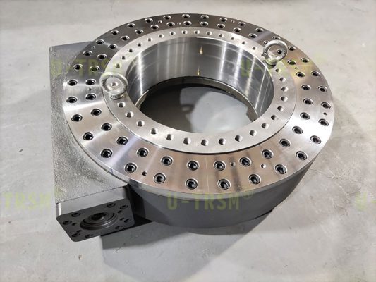 WDE25 大倾覆力矩双排交叉滚子内圈旋转回转驱动应用在特殊设备上,用户要求回转驱动要承受大于大于550KN.M的倾覆力矩。设计一款可以承受大倾覆力的回转驱动不是什么困难的事情,但是客户需要的是替换原来的旧回转驱动,这就要求我们在不改变安装尺寸和旧回转驱动的使用原则的情况下按照我们的思路设计一个回转驱动,并且这个回转驱动还要能承受更大的倾覆力矩。
