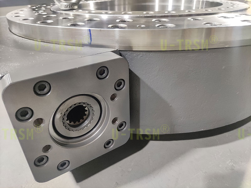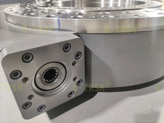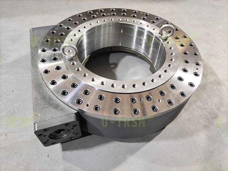一款大倾覆力矩双排交叉滚子内圈旋转回转驱动