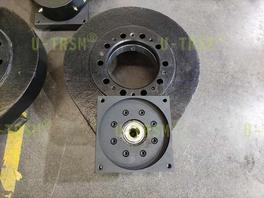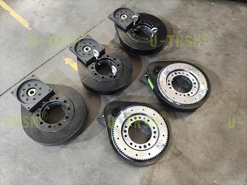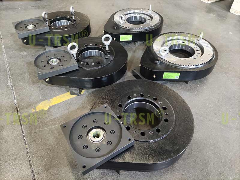 S-I-O-0300 适配大尺寸减速电机回转驱动应用在特种设备上,客户使用回转驱动带动转台旋转固定的角度,转台上设计有限位装置,回转驱动只要能稳定旋转就可以,齿只需要坚固耐用,可以传递扭矩就行。