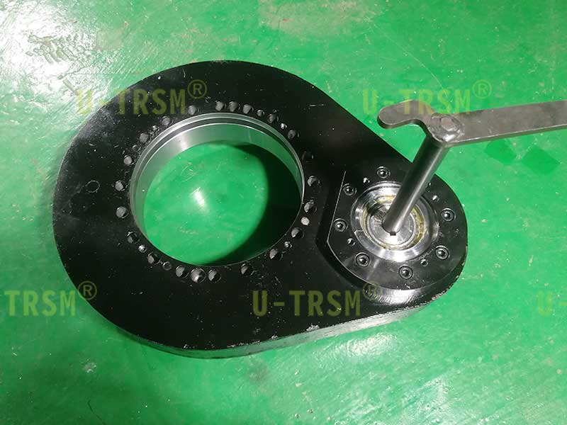 II系列的回转驱动模数6,回转支承高度及壳体厚度都比I系列厚,综合承载上比I系列的大,齿采用模数6比I系列输出扭矩大,减速比大于III系列,是个非常折中的方案,为了方便客户安装,将适配法兰切掉一块,在不影响回转驱动强度和结构的情况下满足了客户的安装需求。