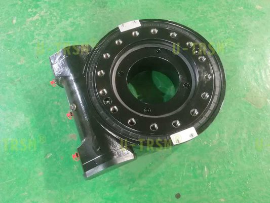 HSE9重载高转速回转驱动客户垂直安装使用,用来带动绞盘提升重物,用液压马达带动回转驱动旋转。回转驱动竖直安装使用时如果扭矩大,转速高,容易产生噪音,客户的转速较快,输出扭矩很大。