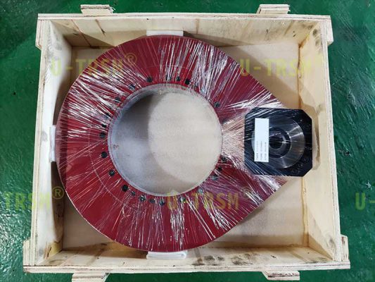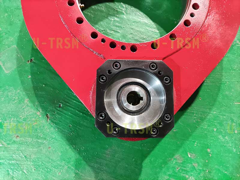 S-I-O-0311齿轮式回转驱动是一款应用在机床设备上的精密型产品。跟一般产品不同的是,这款回转驱动装置在机床设备上需要反向安装,也就是外圈转动的轴承圈向下带动客户的工装对工件进行旋转,并且需要很高的回转精度。