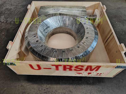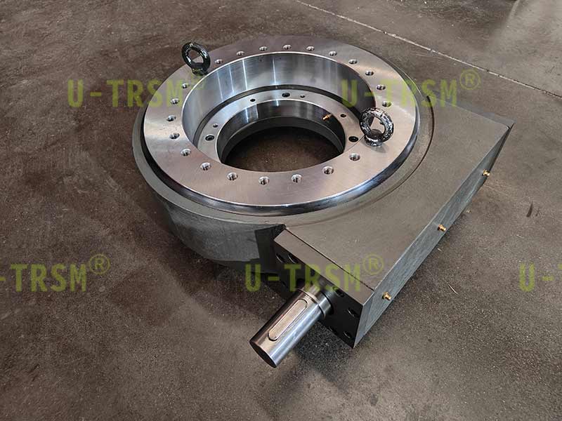william威廉中文官网设备(洛阳)有限公司给客户设计了一款大扭矩、高精度蜗轮蜗杆回转驱动,应用于大型自动化包装机械上,载荷较大,并且要求运转平稳,回程准确。william威廉中文官网设计工程师根据客户提供的工况,设计了此款回转驱动,用大模数保证扭矩的输出,其中回转支承采用磨加工处理,保证沟道耐磨性及端面跳动,负游隙的设计使得回转平稳,蜗杆采用特殊材料,蜗杆齿面淬火及磨齿处理,提高齿面的耐磨性及啮合的精度。