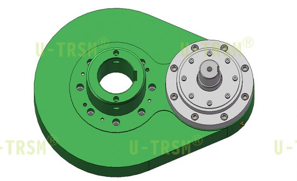 此款双排球齿轮式回转驱动应用于自动化设备上,客户要求超高速的运转,采用油液润滑,承受较大轴向载荷及倾覆力矩,外形安装尺寸有限制,采用皮带轮输入传动。